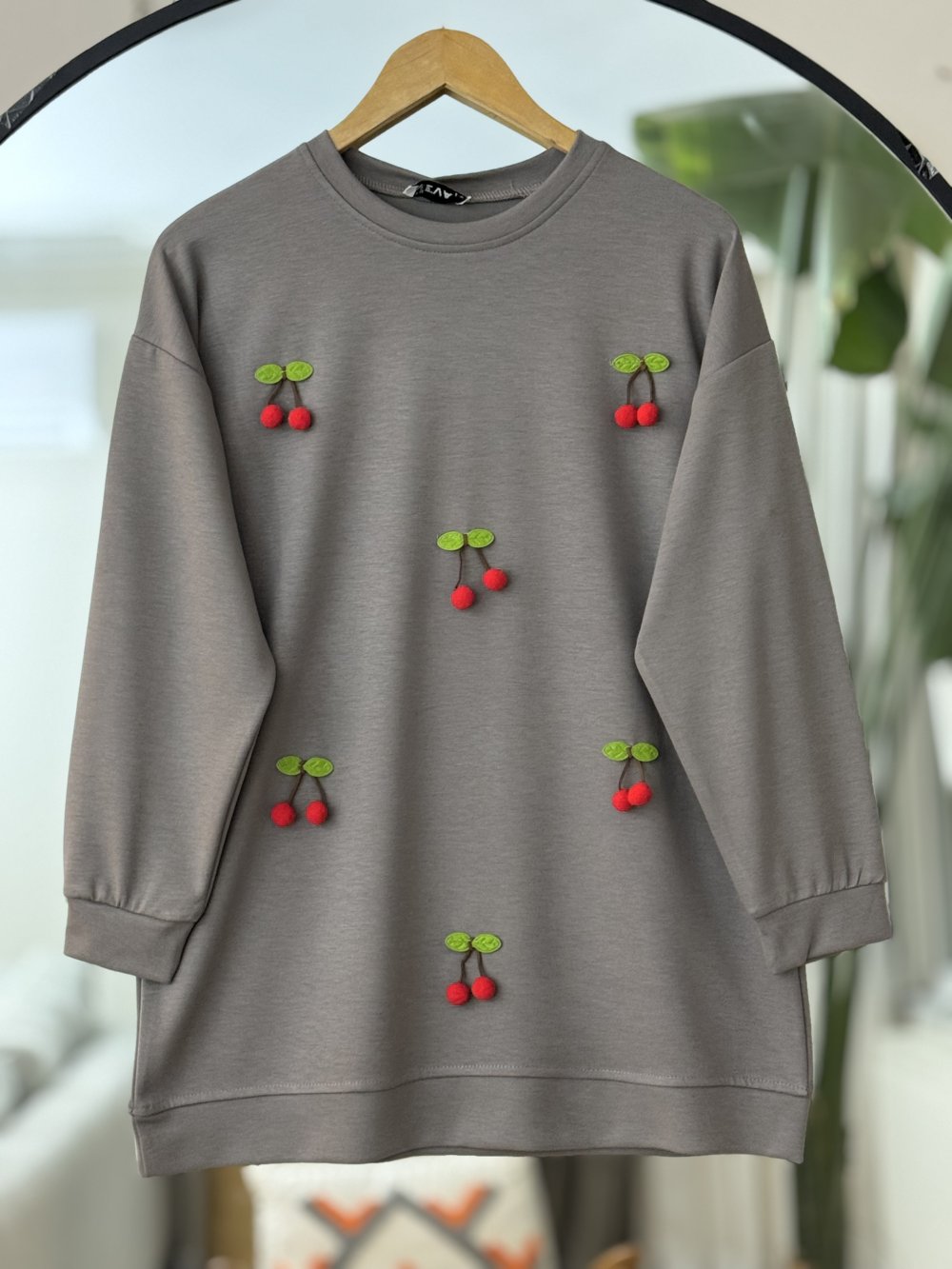 Kiraz Detaylı Oysh Tunik Vizon NV4530
