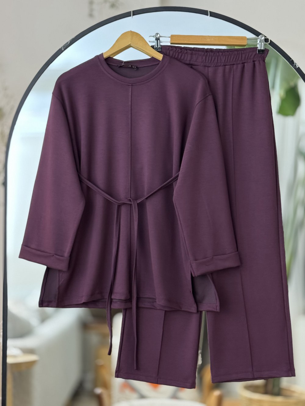 Kıvrık kol cımalı bolpaca pantolon Takım Mürdüm TCN40117