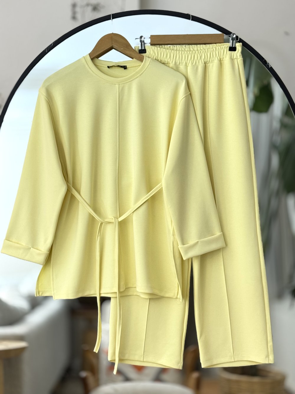 Kıvrık kol cımalı bolpaca pantolon Takım Sarı TCN40117