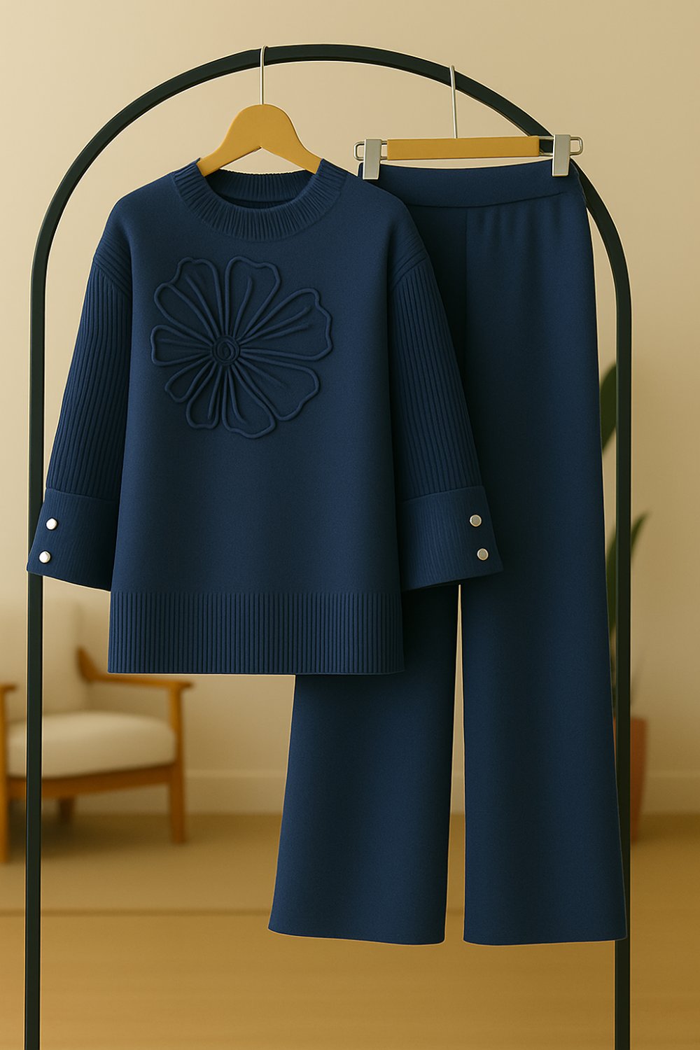 Kıvrık Kol triko Takım Lacivert TCN40136