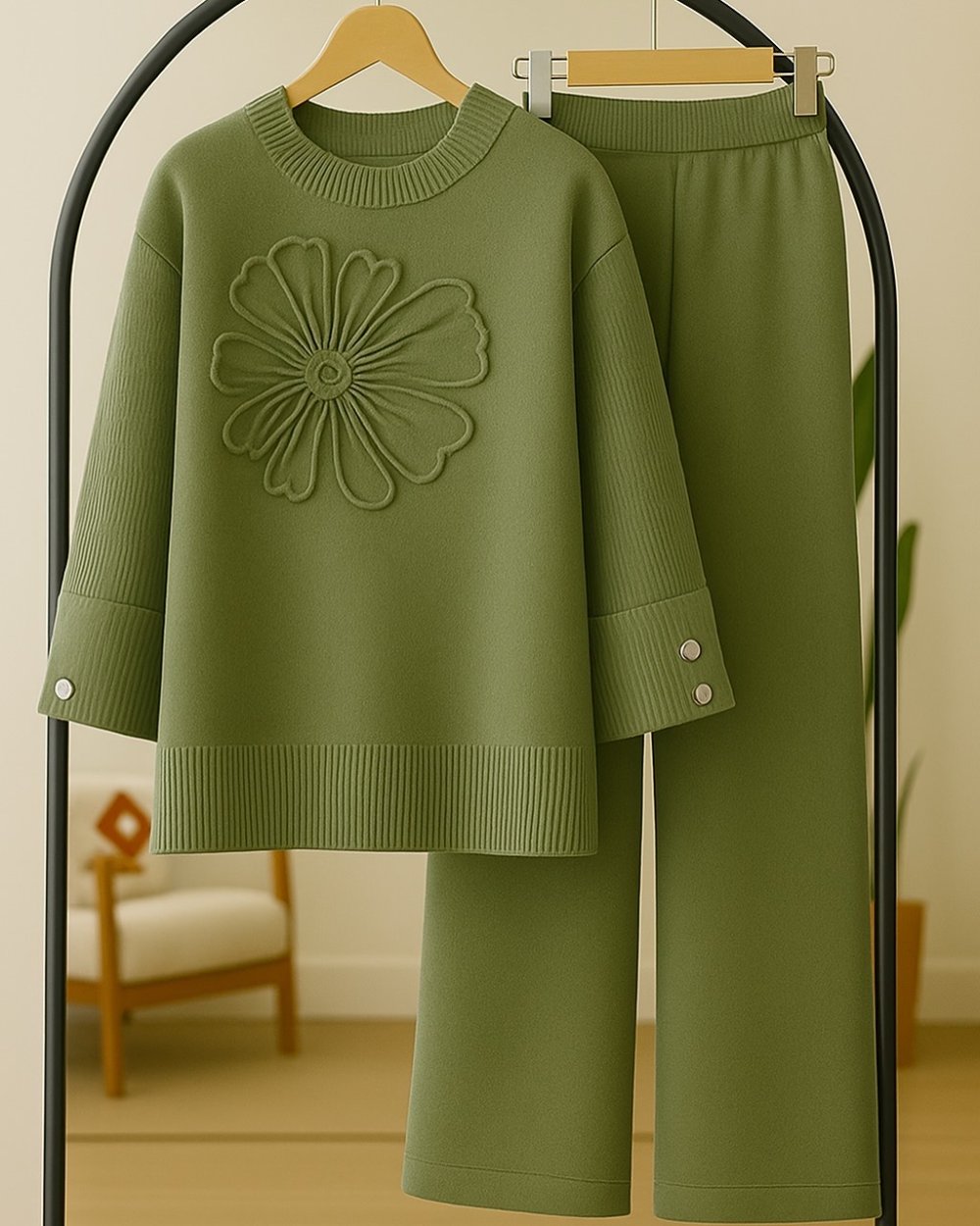 Kıvrık Kol triko Takım Yeşil TCN40136