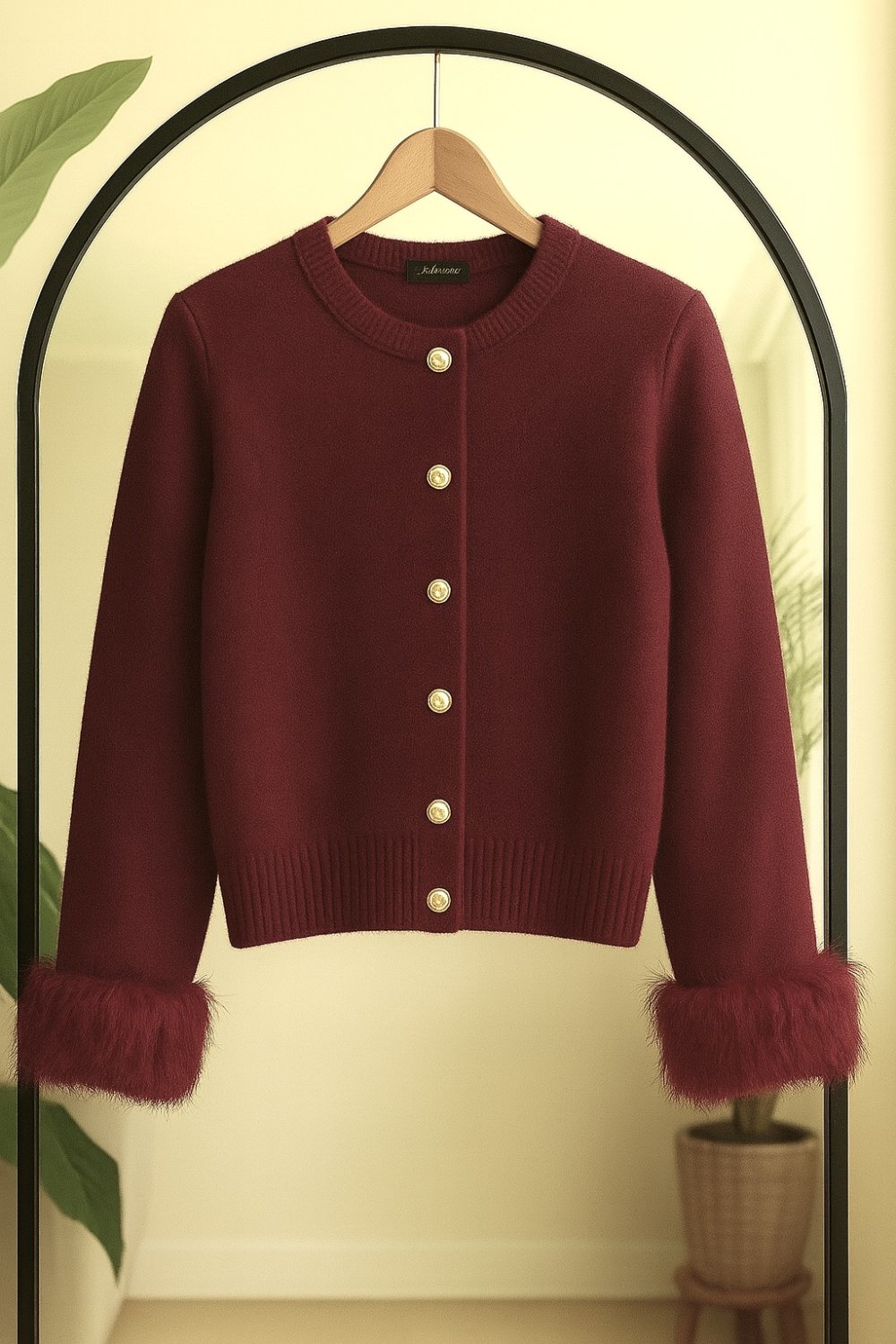Kol kürklü yumoş kısa hırka Bordo SLT8040