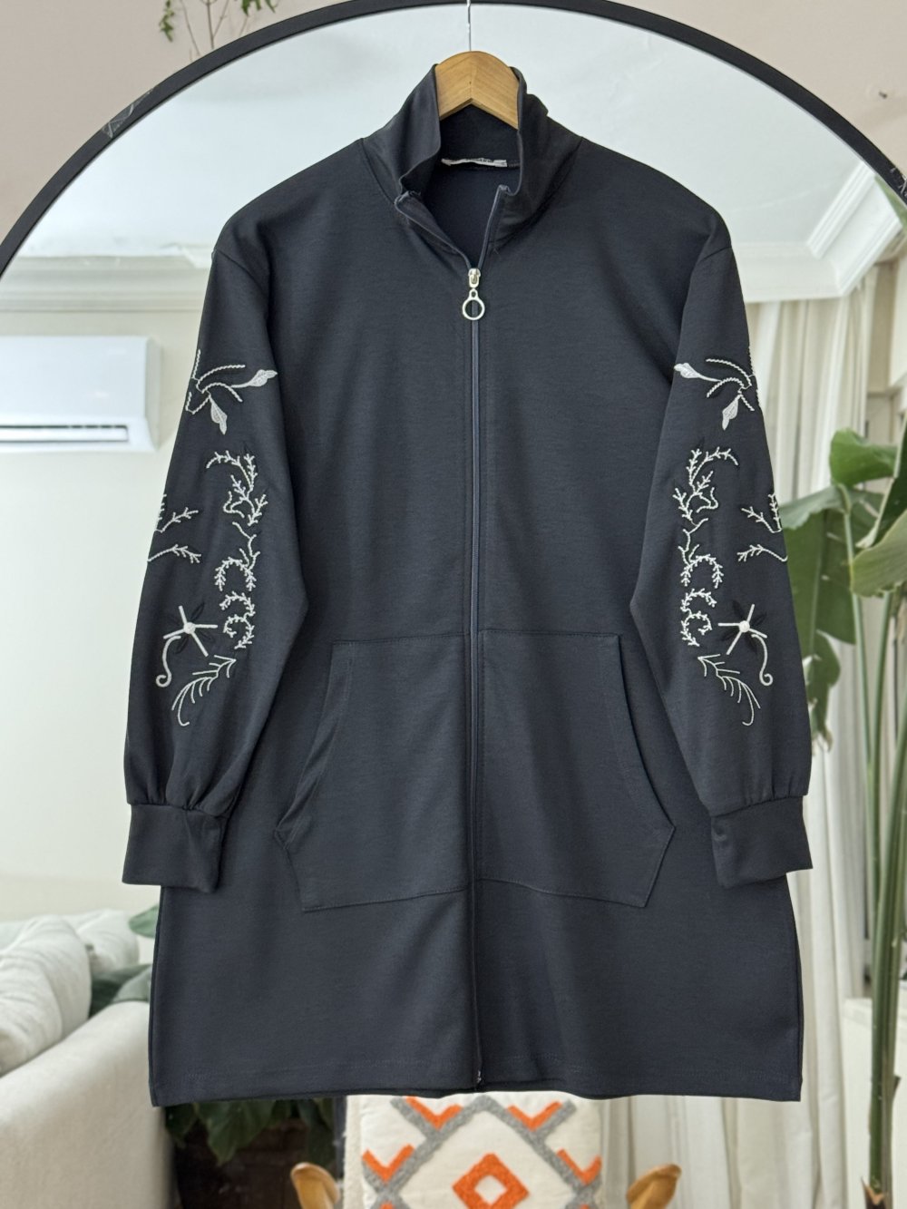 Kol Nakış İşlemeli Fermuarlı tunik Siyah DS2051