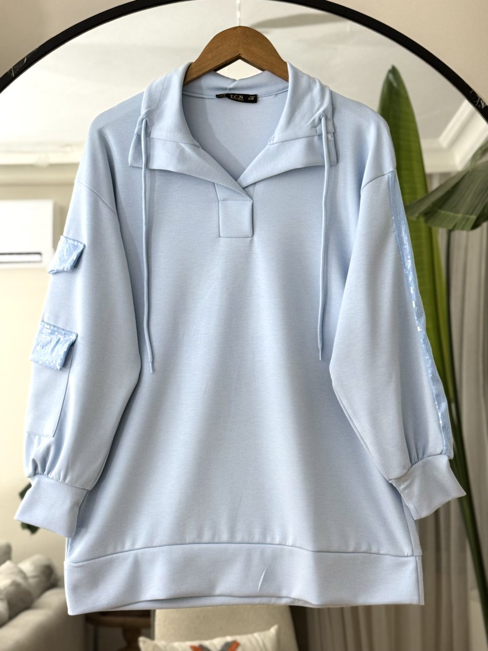 Kol pul payet işlemeli Tunik Mavi TCN40119