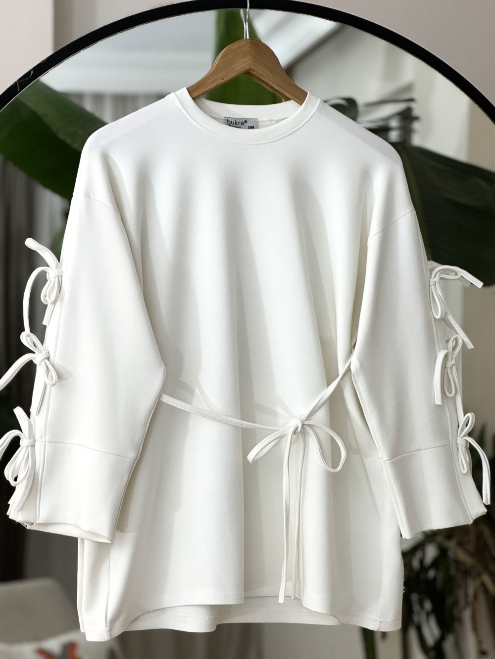 Kol üç biyeli Seyyar Kuşaklı Tunik Beyaz BK9523