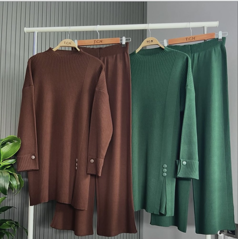 Kolmanşet düğmeli Triko pantolonlu takım kahve TCN4076