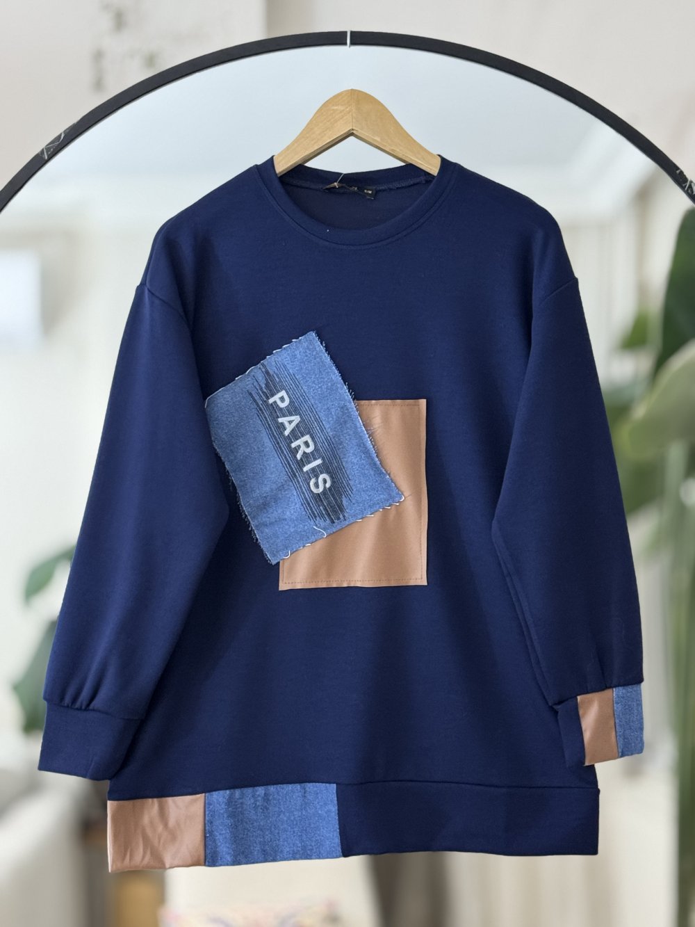 Kot ve deri parcalı Tunik İndigo TCN40115