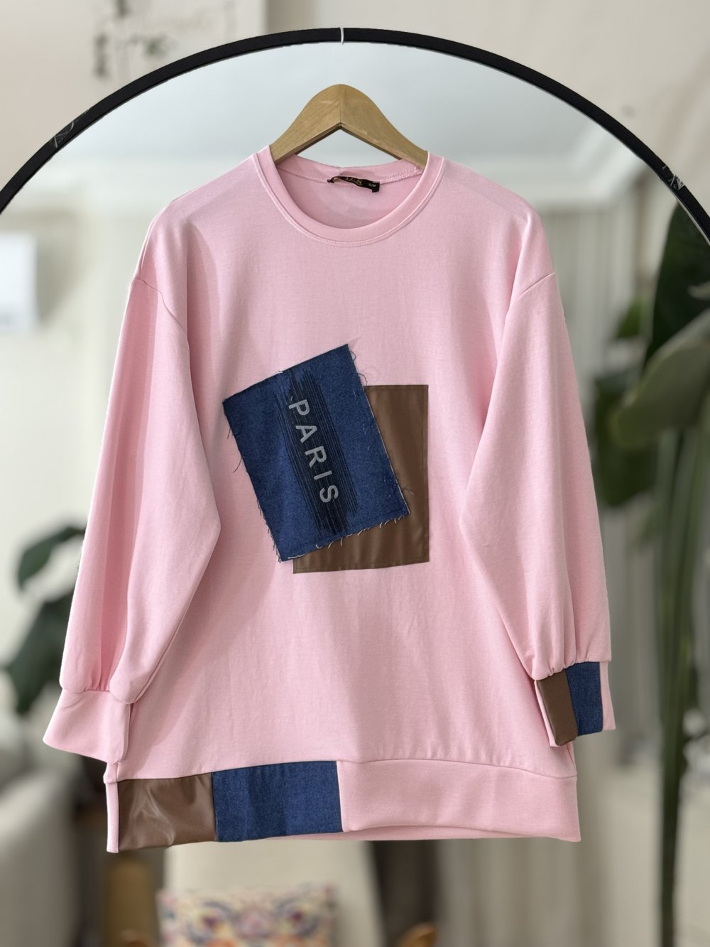Kot ve deri parcalı Tunik Pembe TCN40115