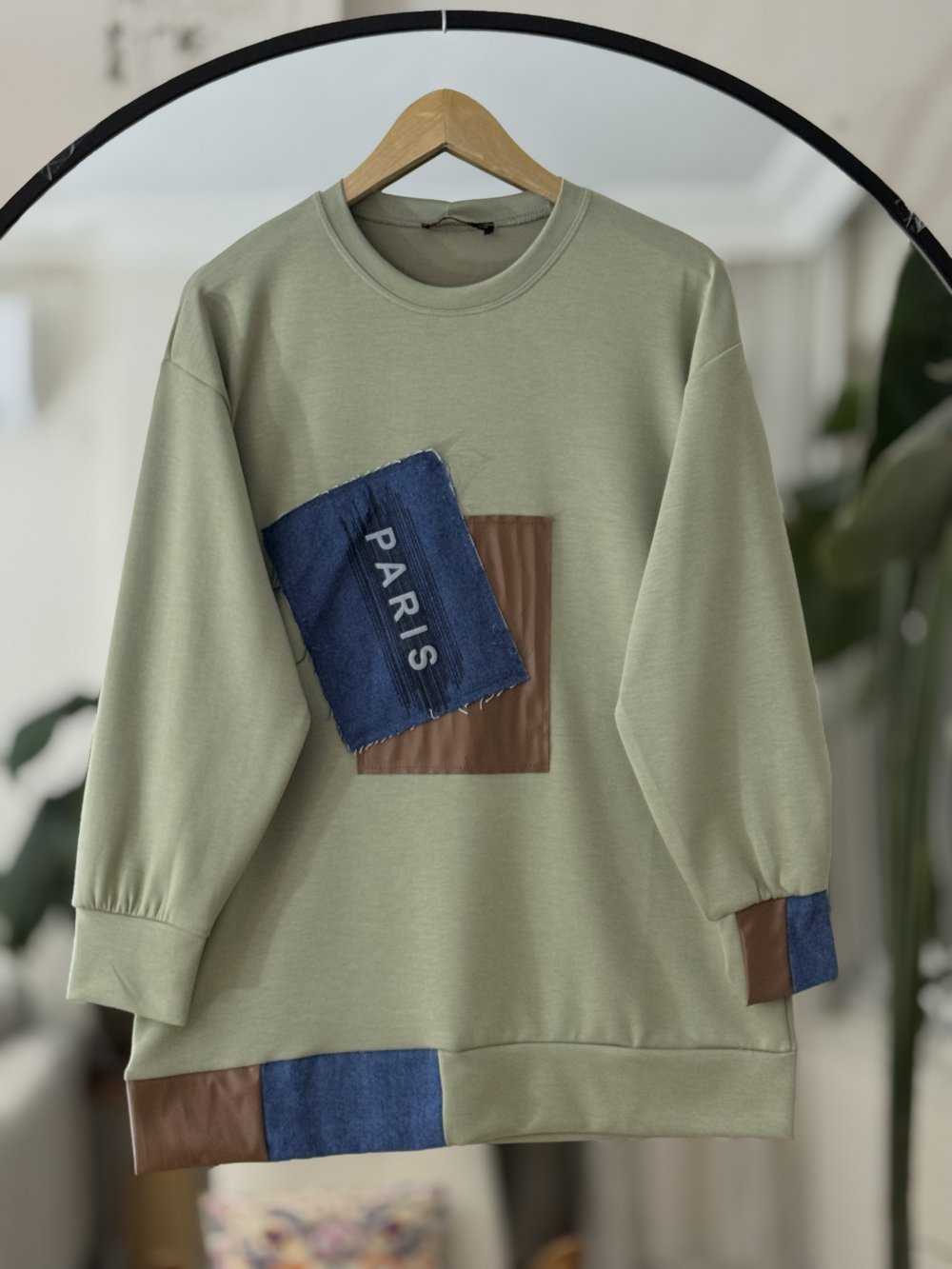Kot ve deri parcalı Tunik Yeşil TCN40115
