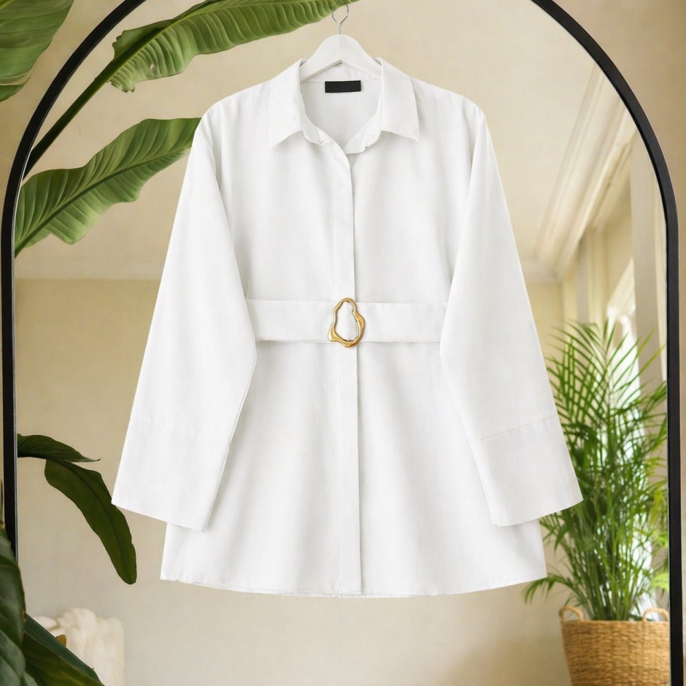 Kuşaklı metal aksesuarlı gömlek Beyaz SL80107