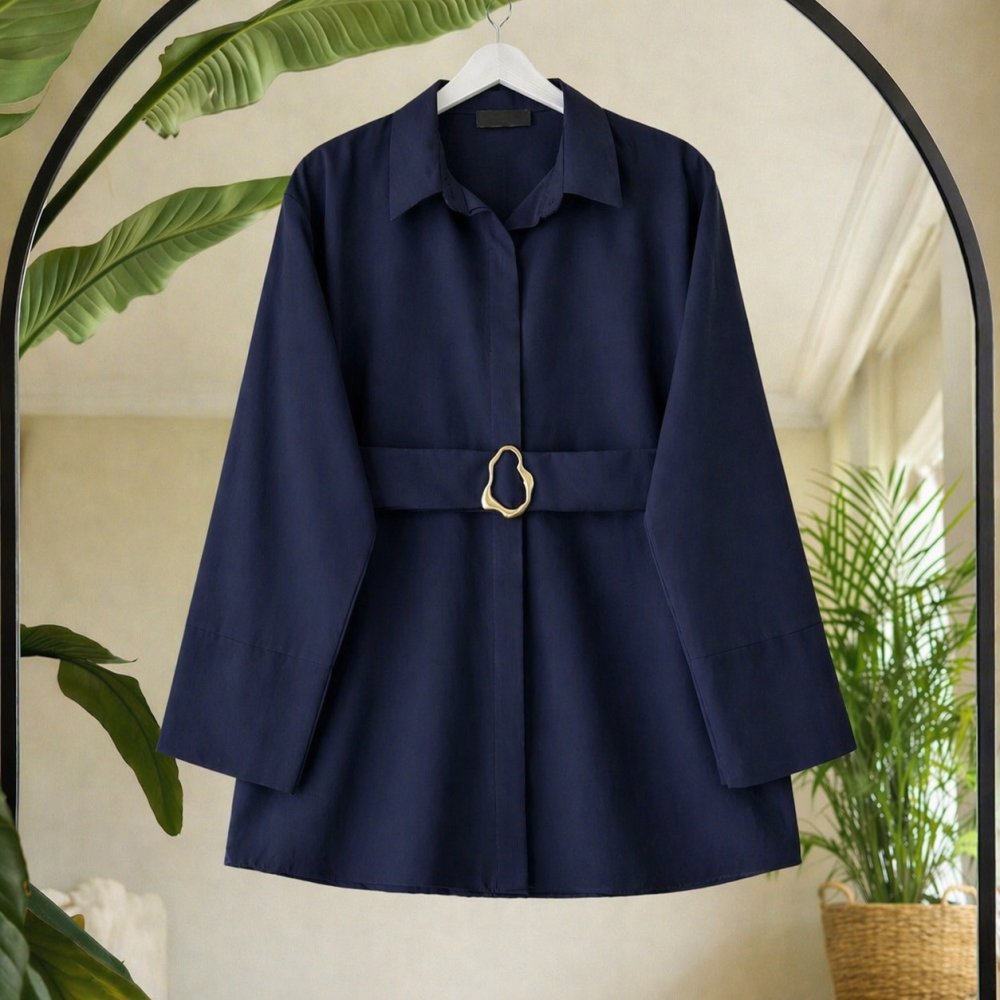 Kuşaklı metal aksesuarlı gömlek lacivert SL80107