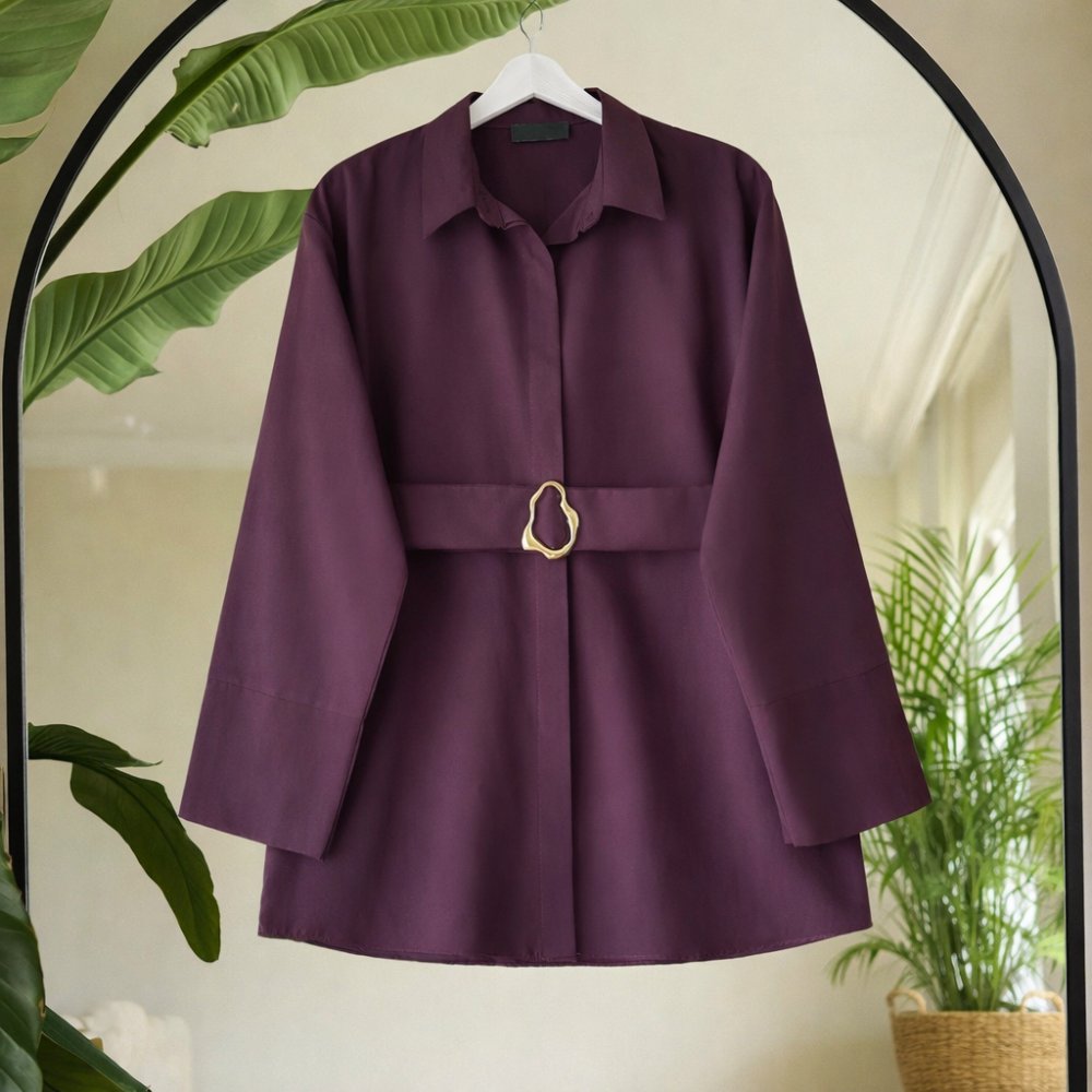 Kuşaklı metal aksesuarlı gömlek Mürdüm SL80107
