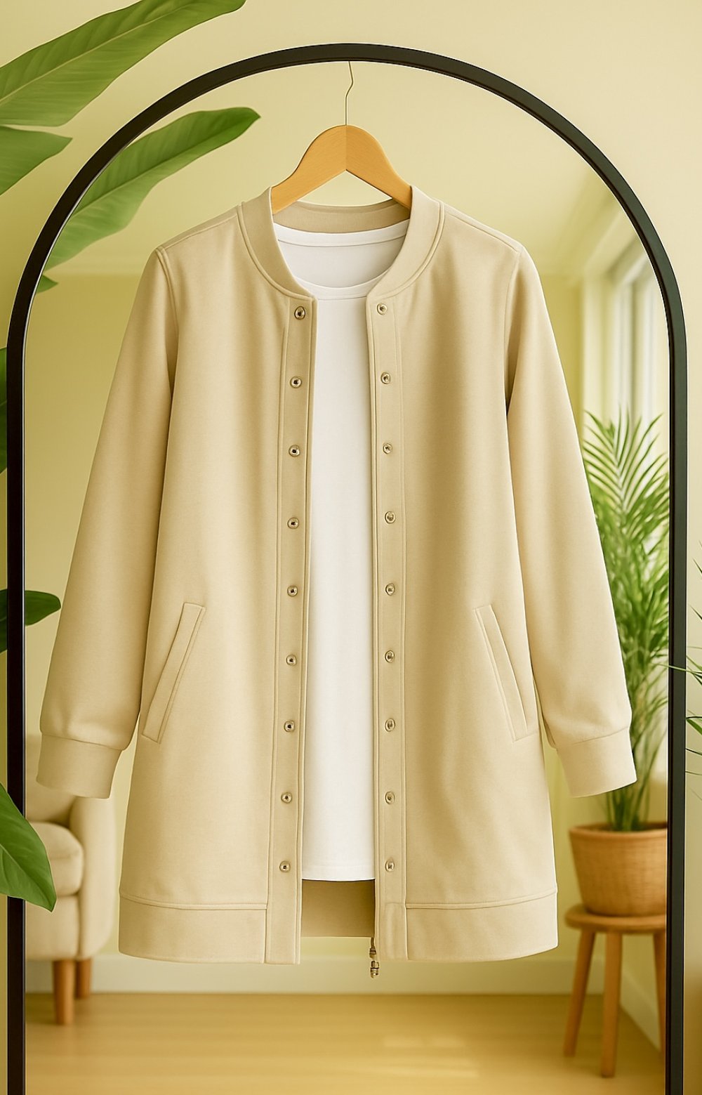 Kuşgözü detaylı fermuarlı içlikli takım Bej TCN40140