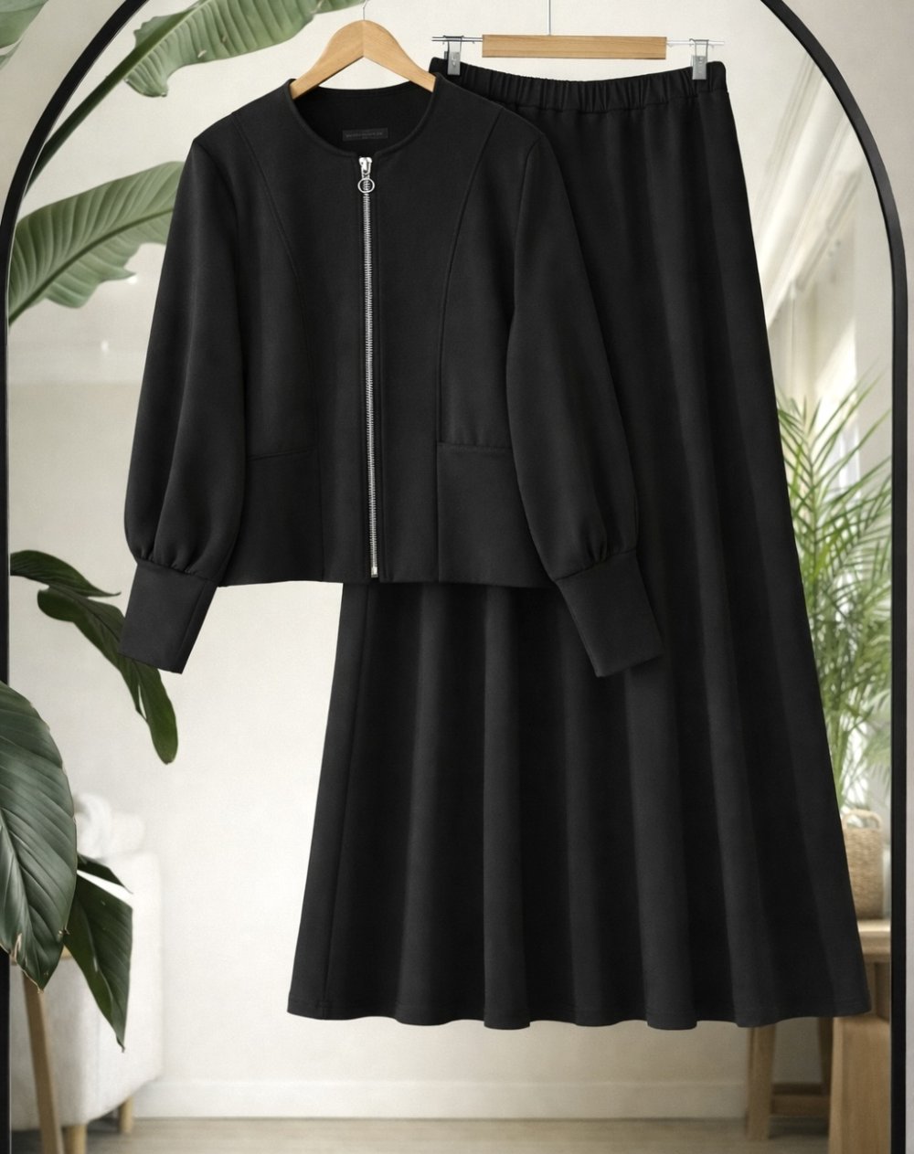 Manşetli Balonkol Etekli Takım Siyah TCN40152