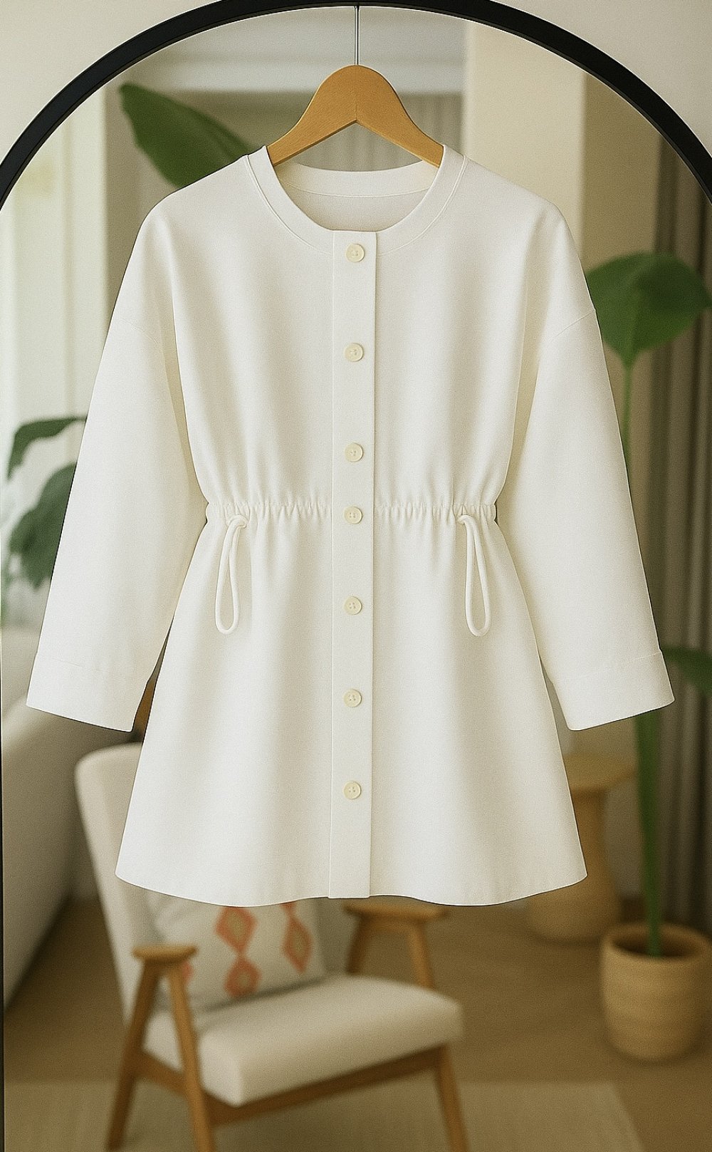Metal düğmeli belkısmı büzgü lastikli Tunik Beyaz BK9528