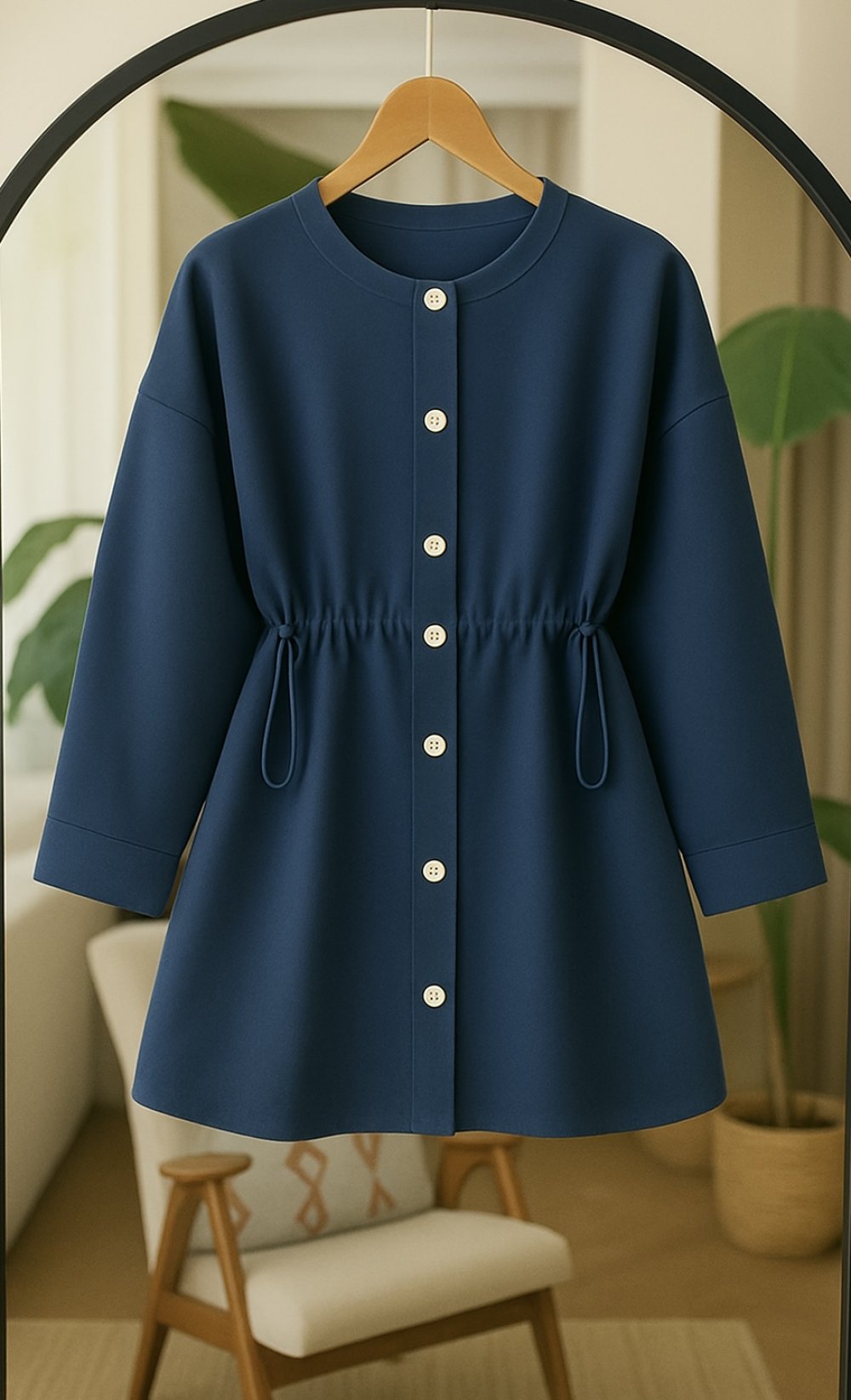 Metal düğmeli belkısmı büzgü lastikli Tunik Lacivert BK9528