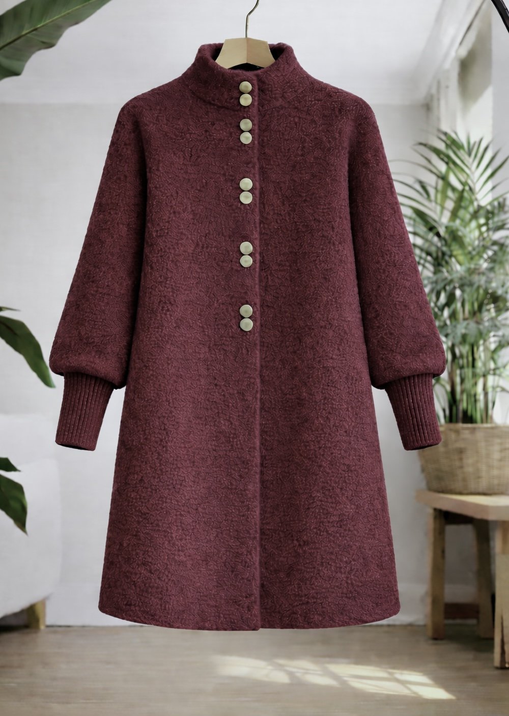 metal Düğmeli Uzun Sakallı Hırka Bordo SLT8052