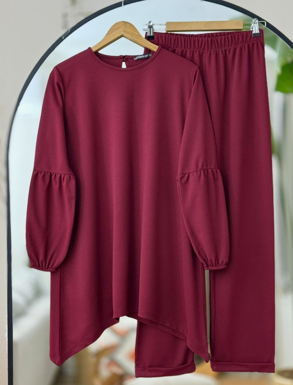 Mevlana model örme krep kumaş takım bordo slt 30559