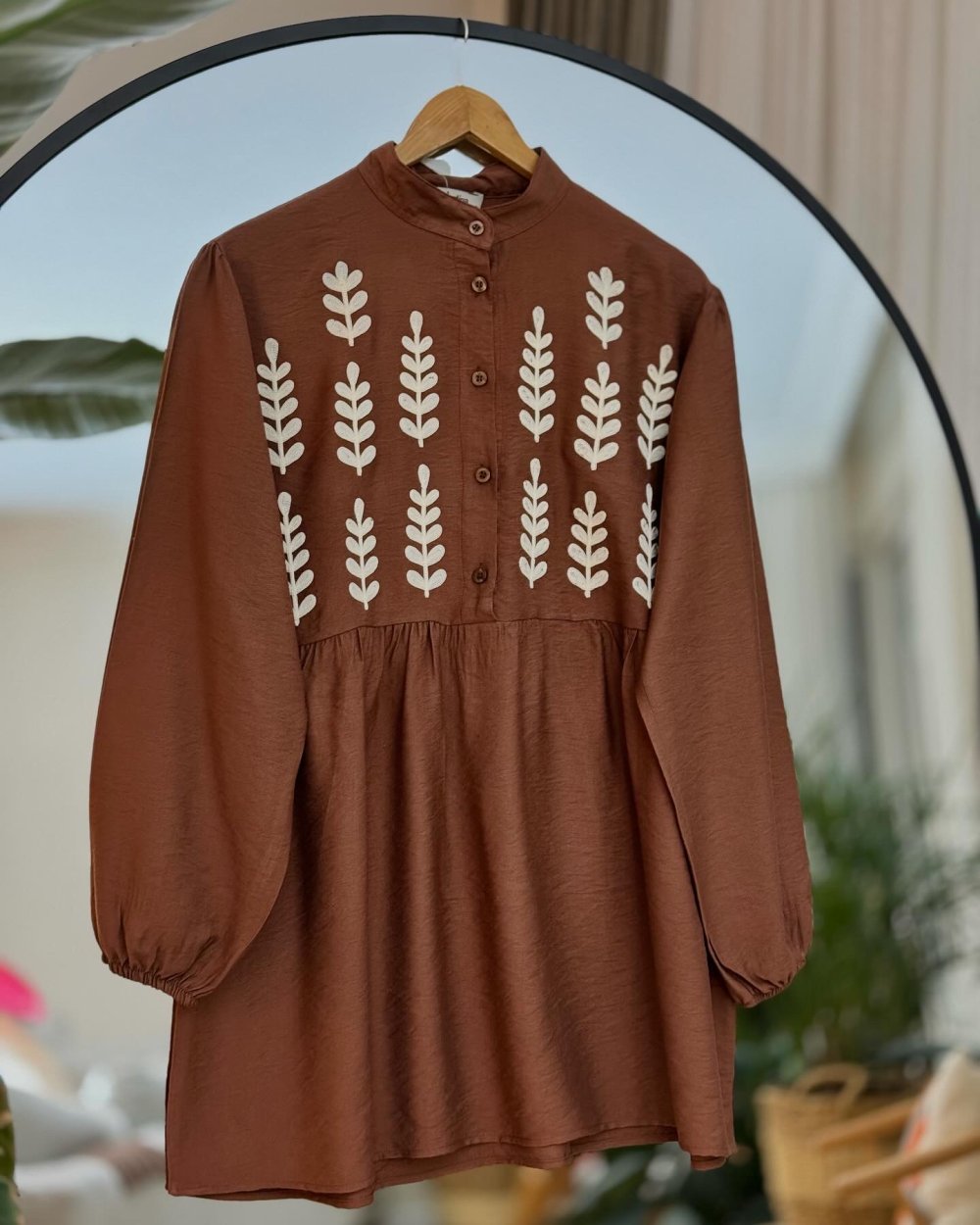 Bu ürün: Nakış İşlemeli Keten Gömlek Tunik Kahve DST30291
