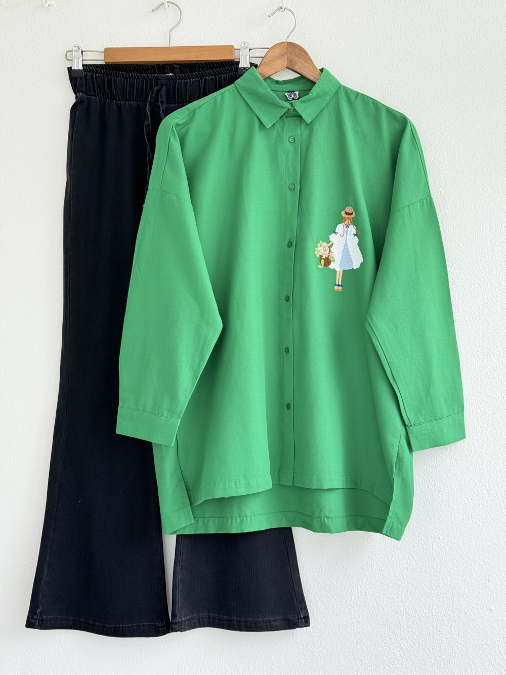Bu ürün: Nakış işlemeli Poplin Kumaş Tunik Yeşil SLT 30245