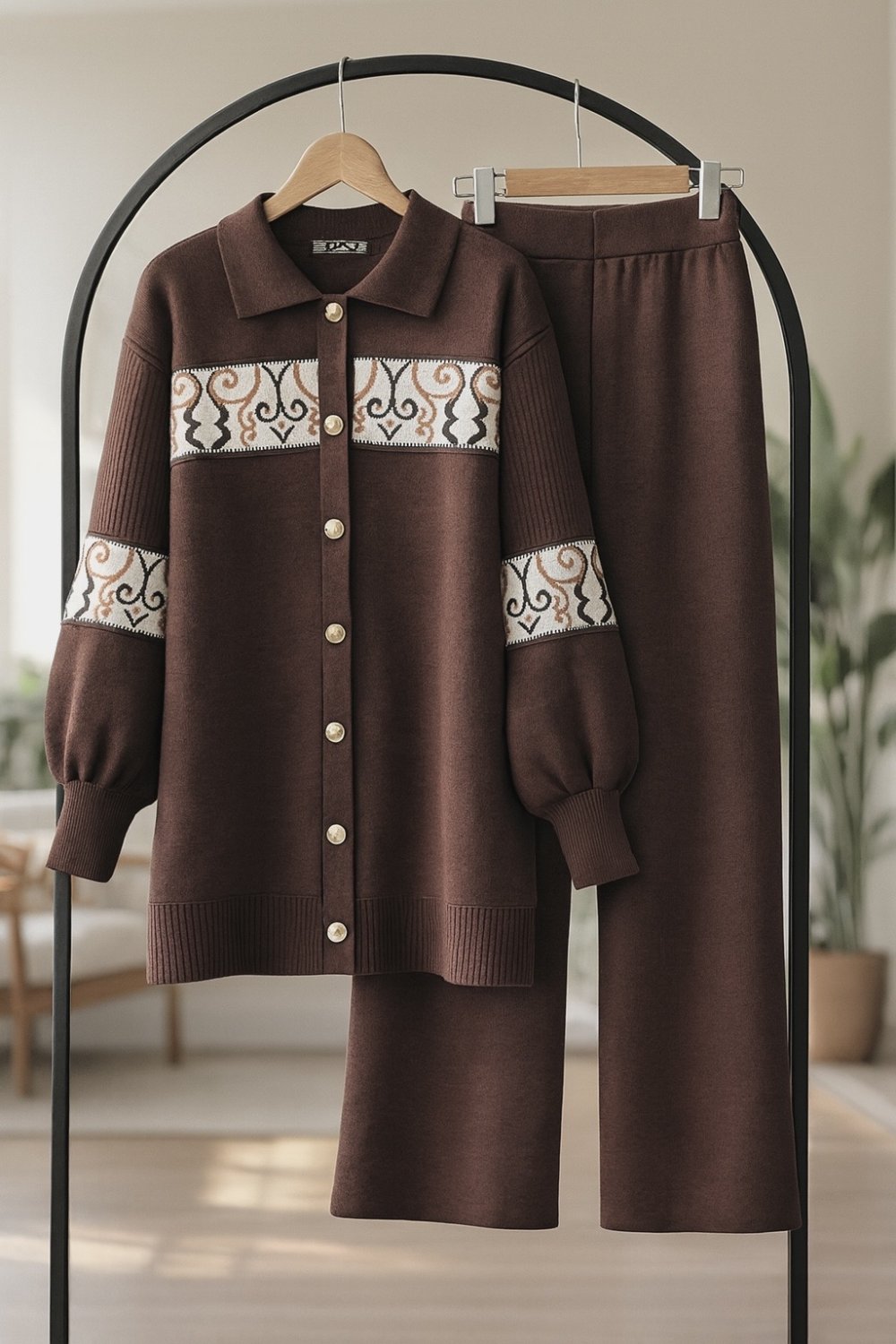 Nakış İşlemeli Triko Takım Kahve TCN40139