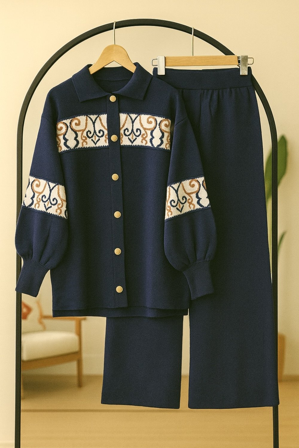 Nakış İşlemeli Triko Takım Lacivert TCN40139