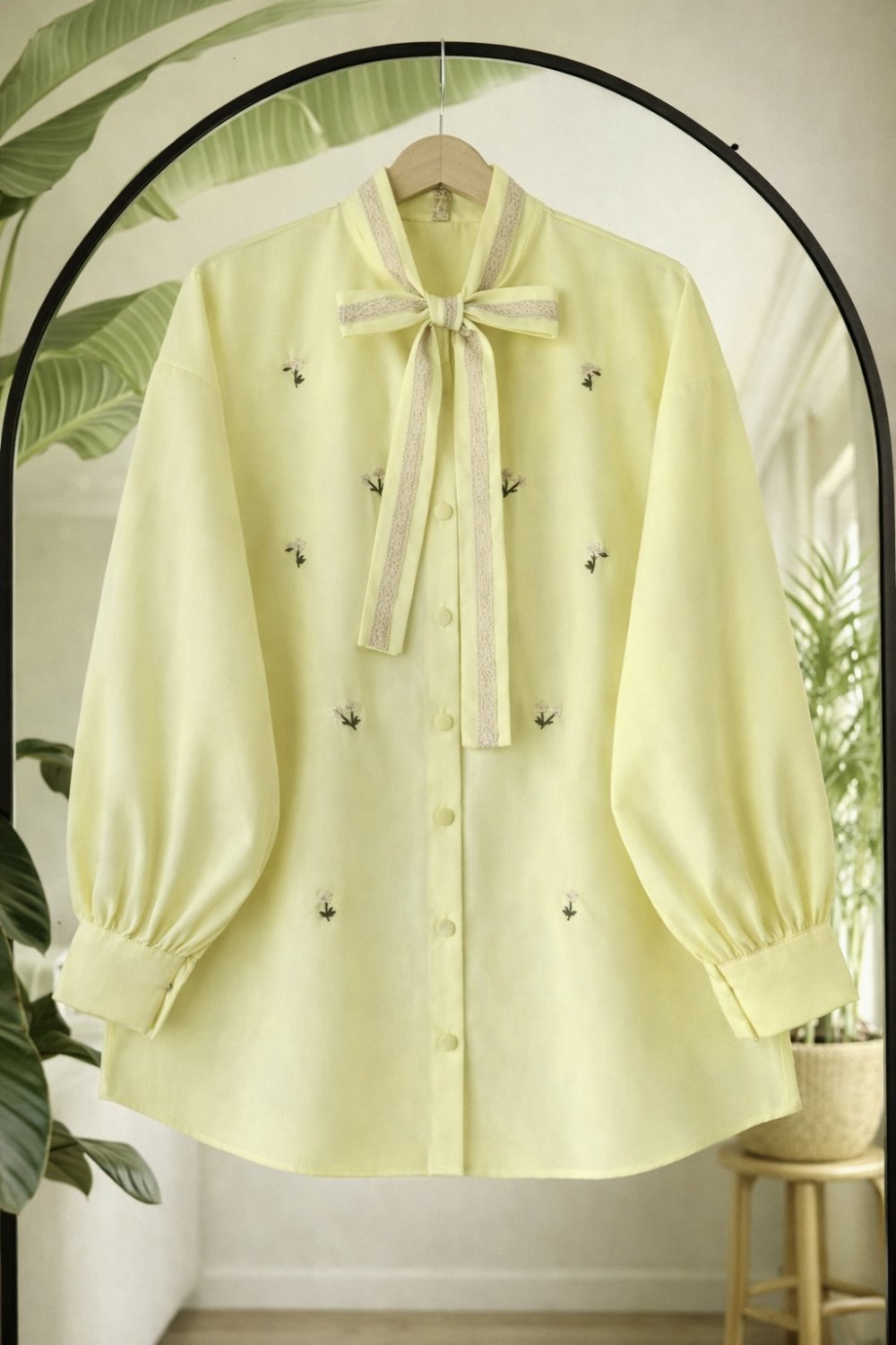 Nakış ve dantel işlemeli Gömlek Sarı TB8095