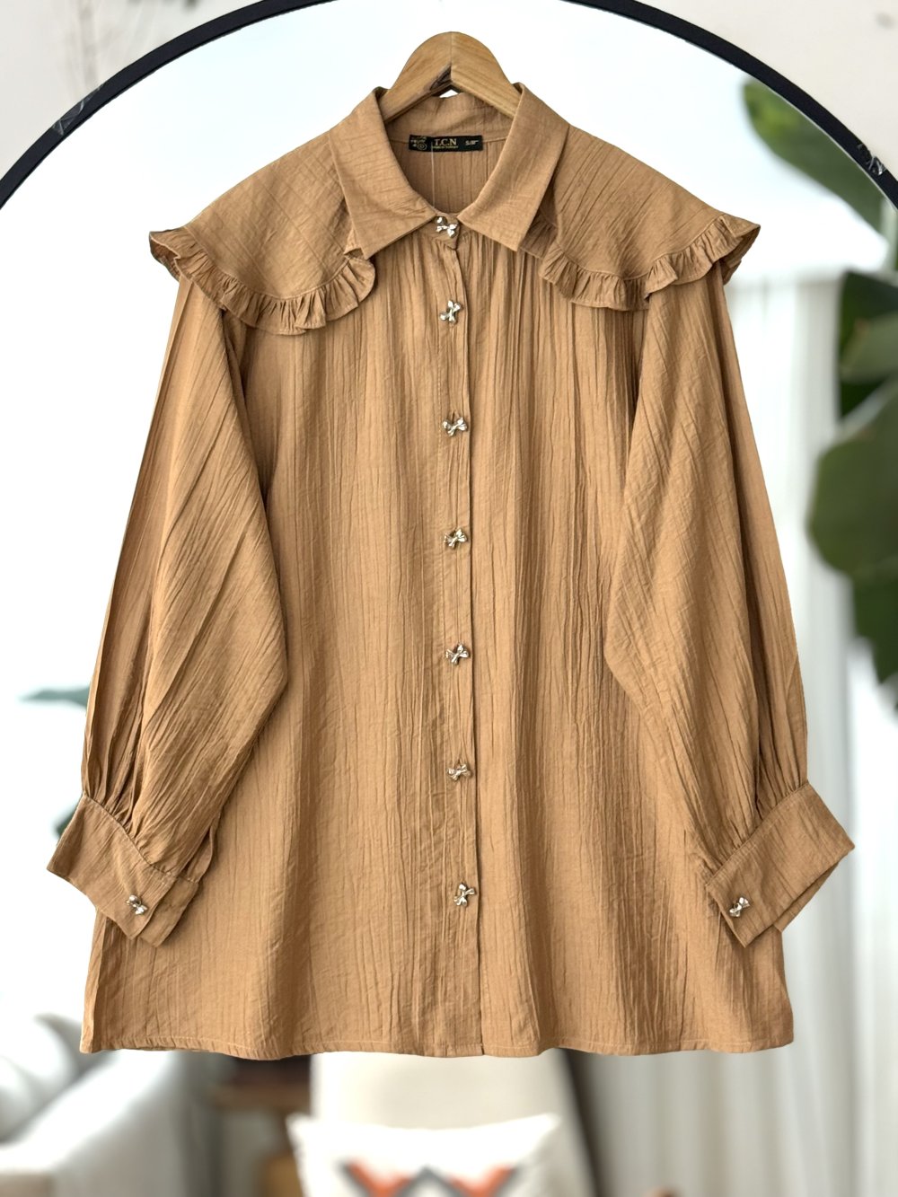 Omuz fırfırlı pelerinli Tunik Camel TCN40106
