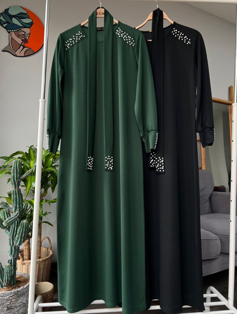 Omuz Kol Taş İşlemeli Elbise Siyah TCN4074