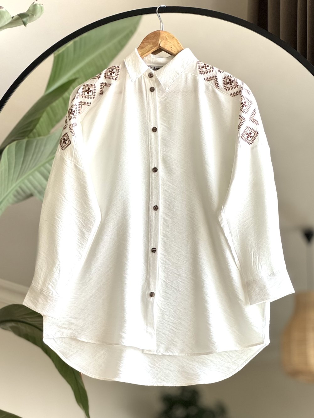 Bu ürün: omuz nakış işlemeli gömlek Beyaz DST 30246