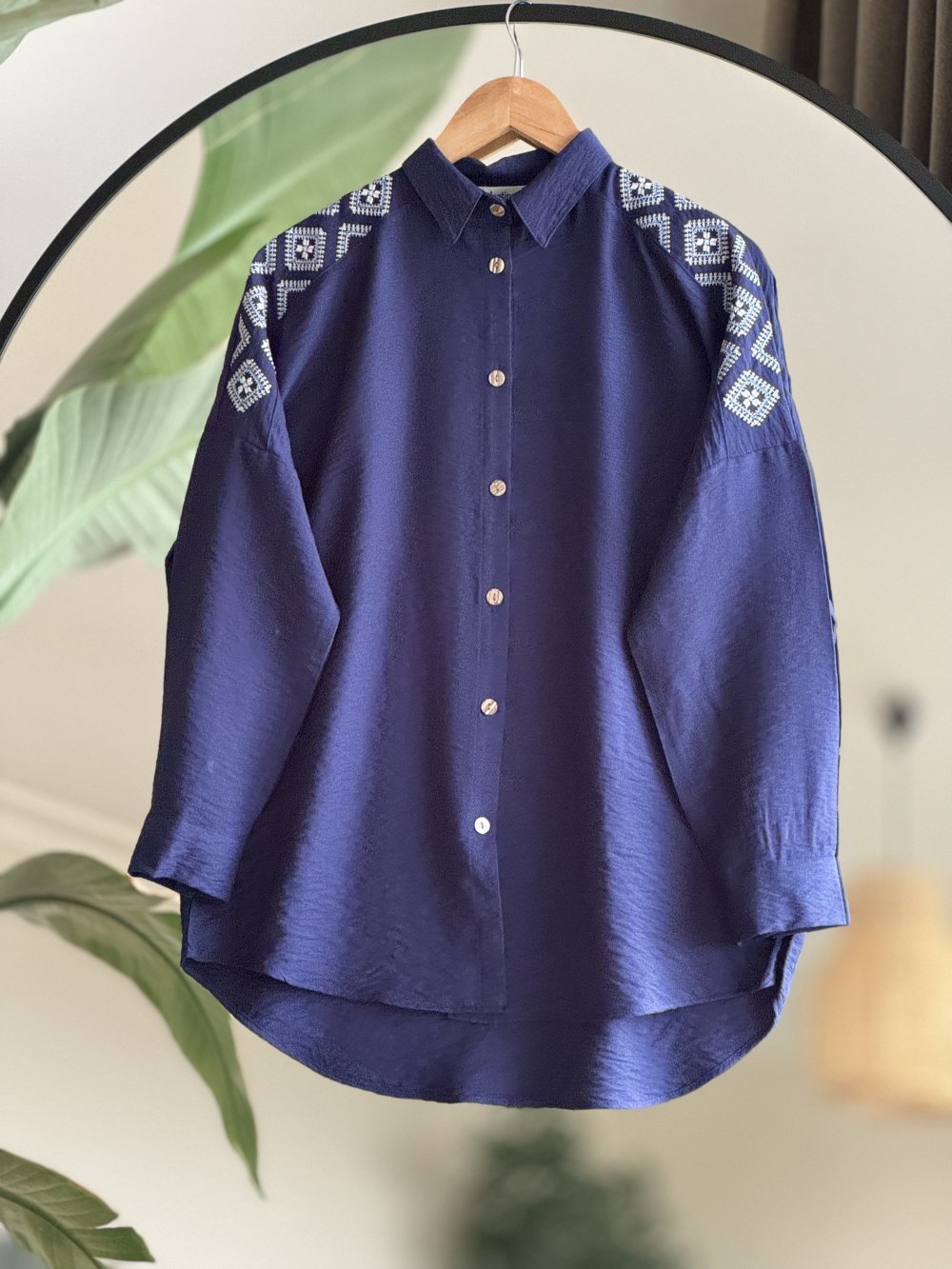 Bu ürün: omuz nakış işlemeli gömlek indigo DST 30246