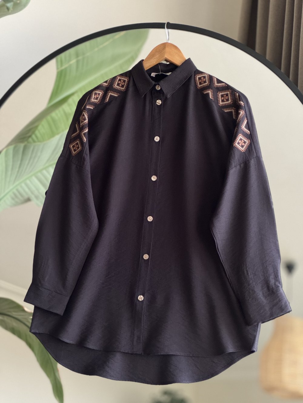 Bu ürün: omuz nakış işlemeli gömlek siyah DST 30246