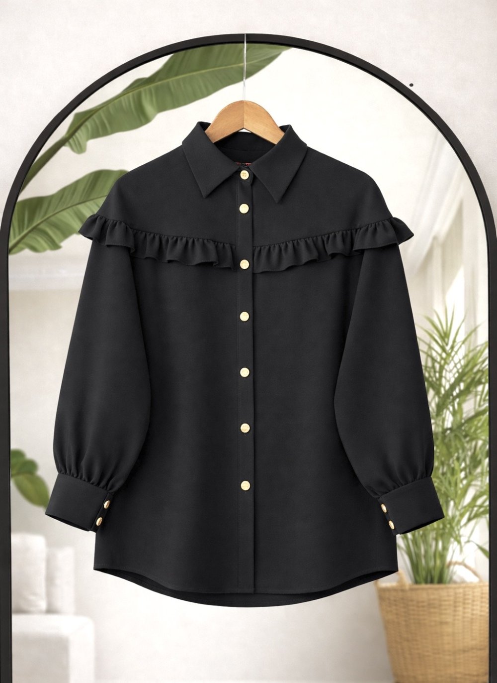 Omuz ve ön fırfırlı Tunik Siyah BK9560