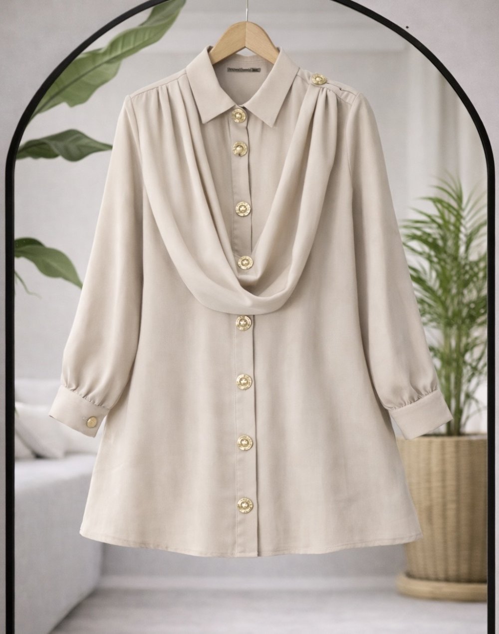 Omuzdan şal detaylı Tunik Bej TCN40168