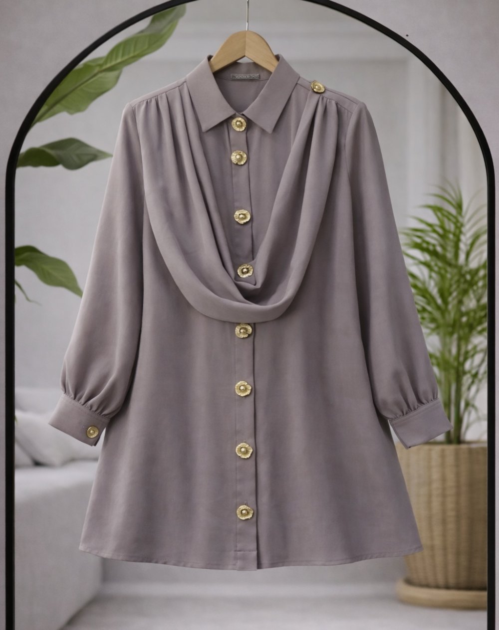 Omuzdan şal detaylı Tunik Vizon TCN40168
