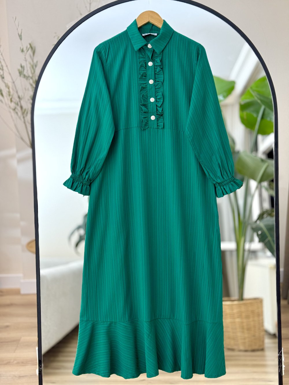 Ön patlı Fırfırlı elbise Zümrüt KRN8014