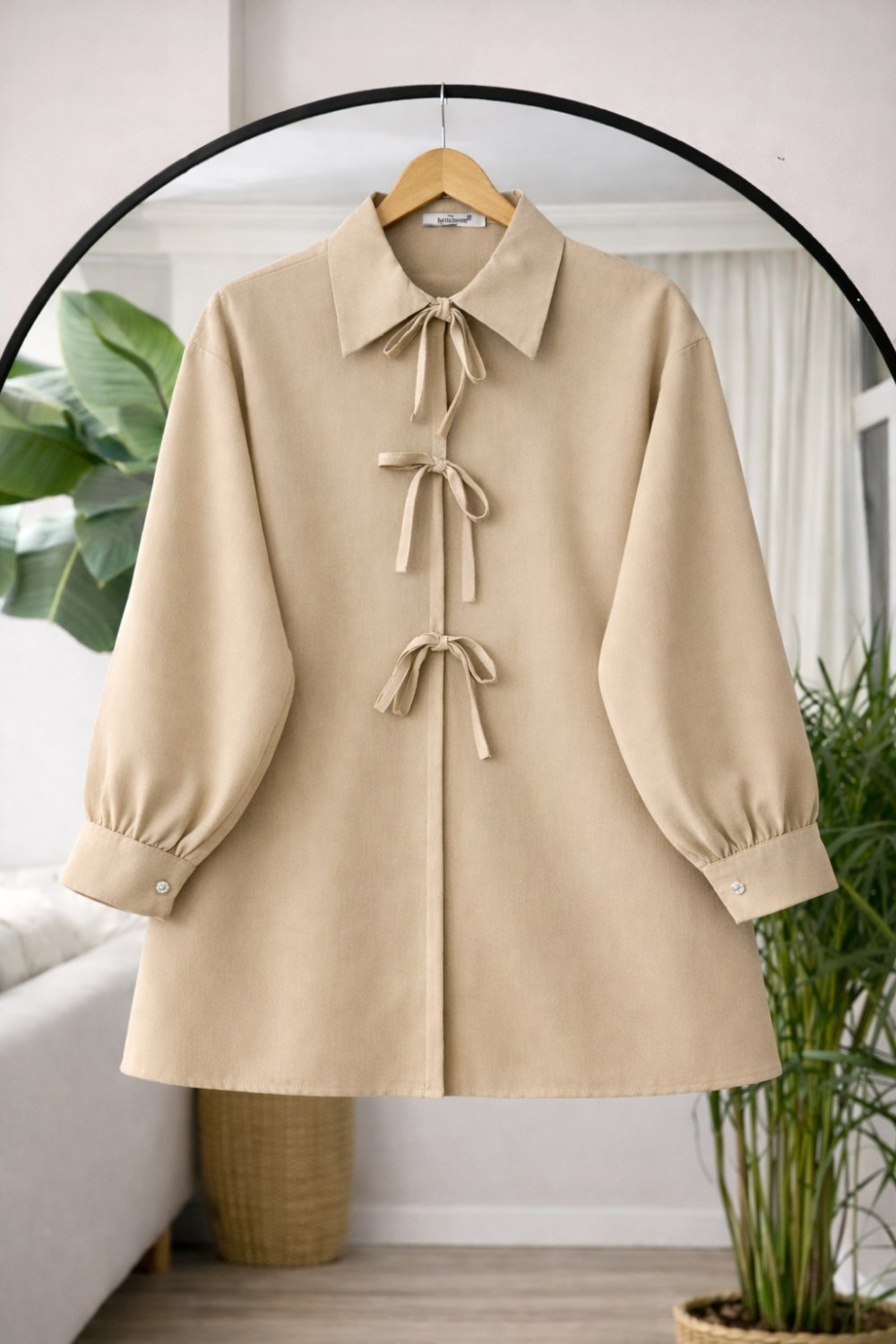 Önü Açık Bağcıklı Tunik Bej BK9544