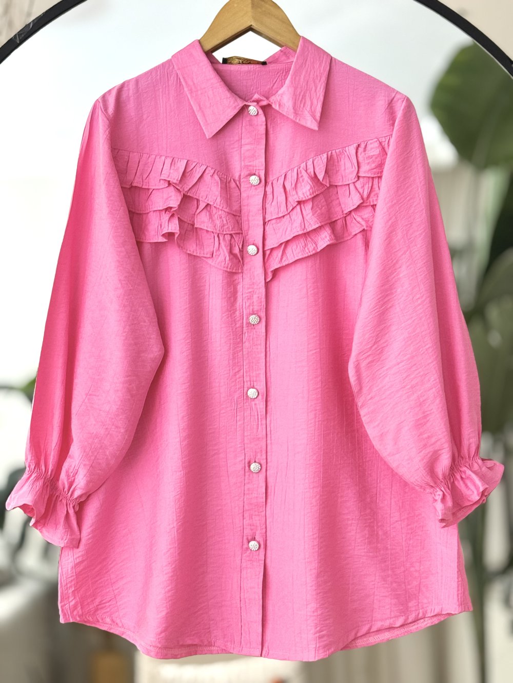 Önü Fırfırlı Metal Düğmeli Tunik Pembe TCN4092