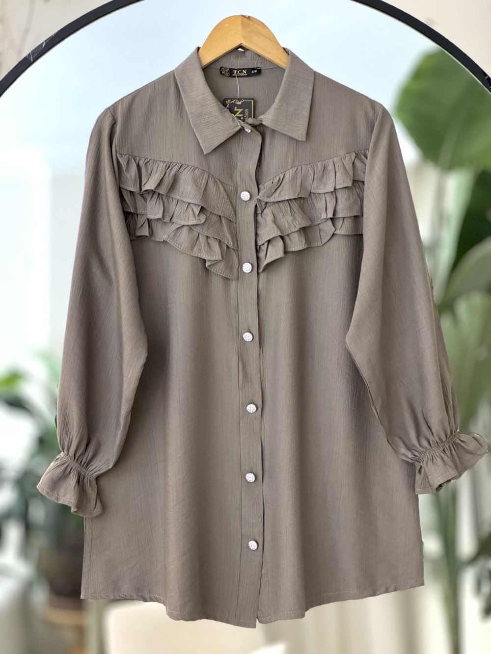 Önü Fırfırlı Metal Düğmeli Tunik Vizon TCN4092