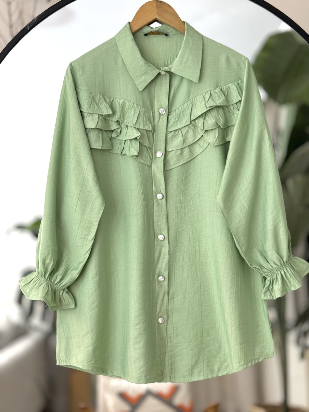 Önü Fırfırlı Metal Düğmeli Tunik Yeşil TCN4092