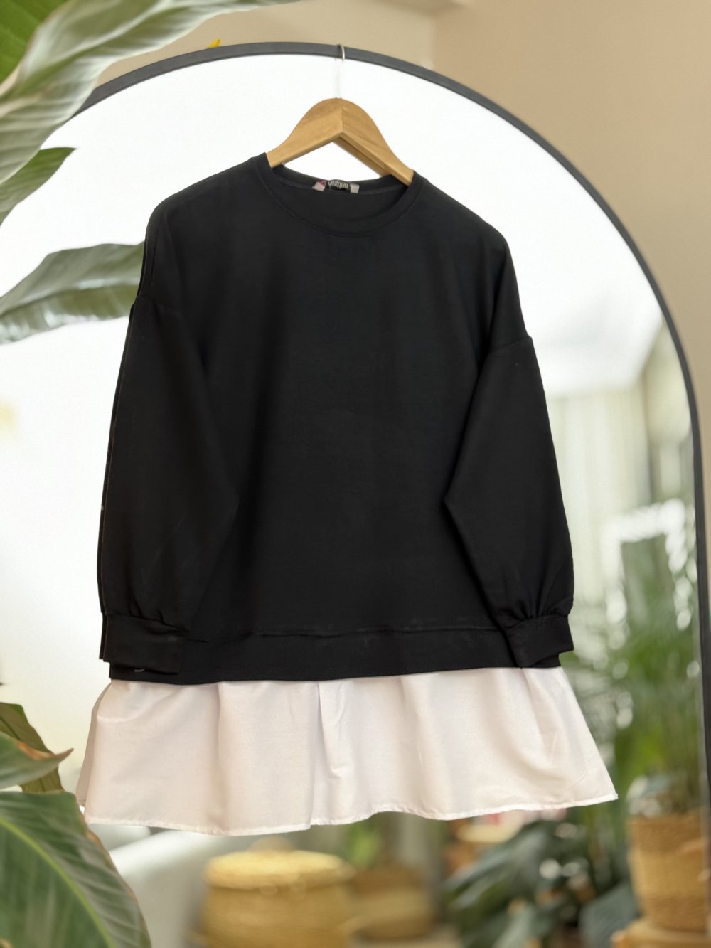 Bu ürün: OSHO Eteği Beyaz parçalı Tunik Siyah DST3285