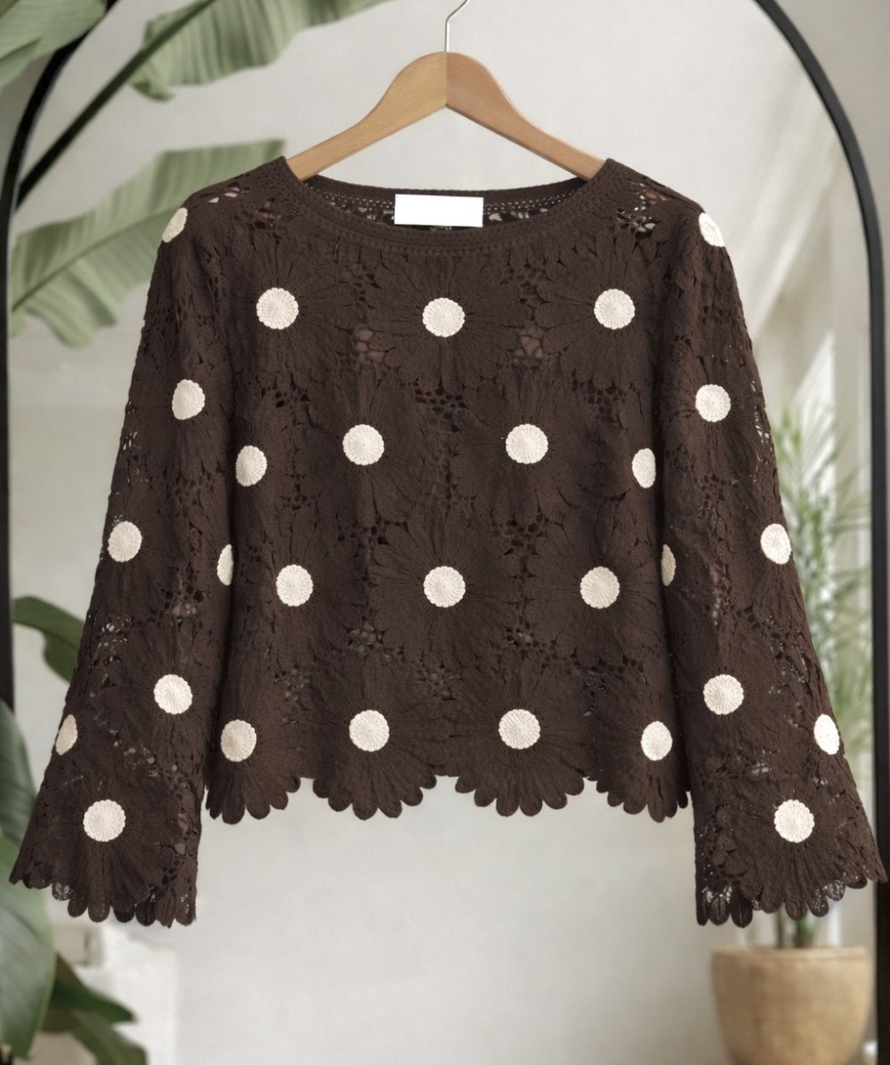 Papatya desen dantel işlemeli tunik acıkahve ES6550