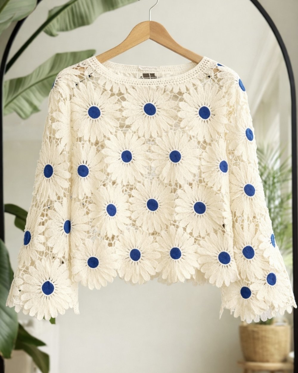 Papatya desen dantel işlemeli tunik mavi ES6550
