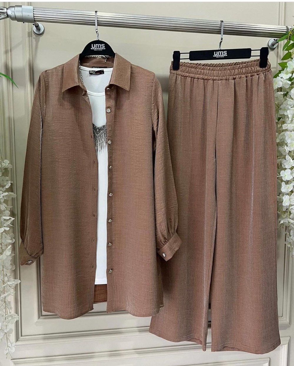 Parlak kumaş İkili Takım Kahve UMS 50134