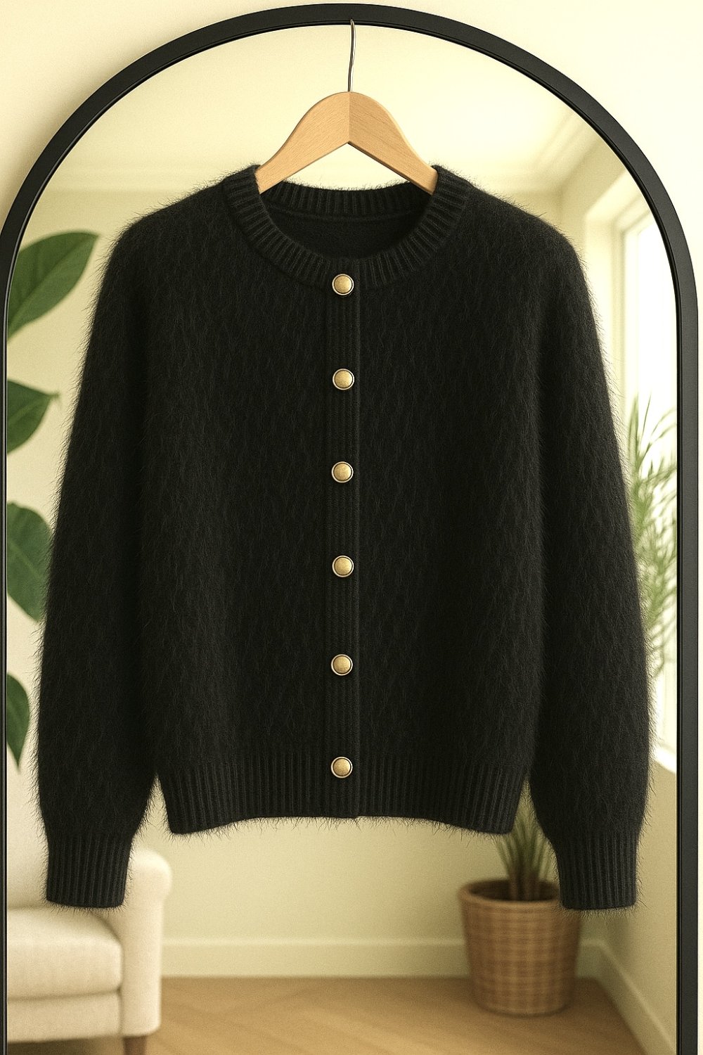 Sakallı Metal Düğmeli triko Hırka Siyah SLT8043