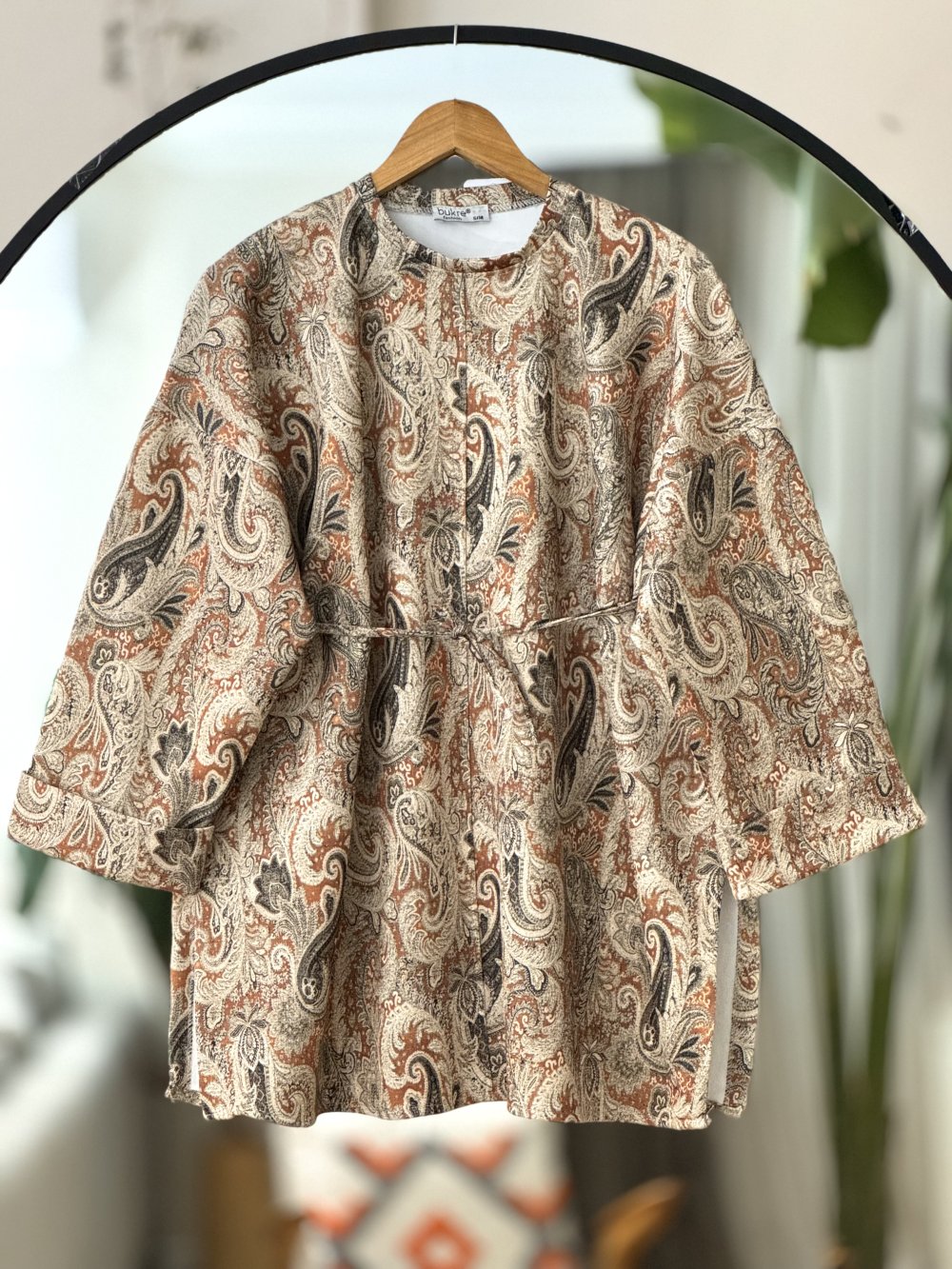 Şal desen Seyyar kuşaklı tunik Kahve BK9514