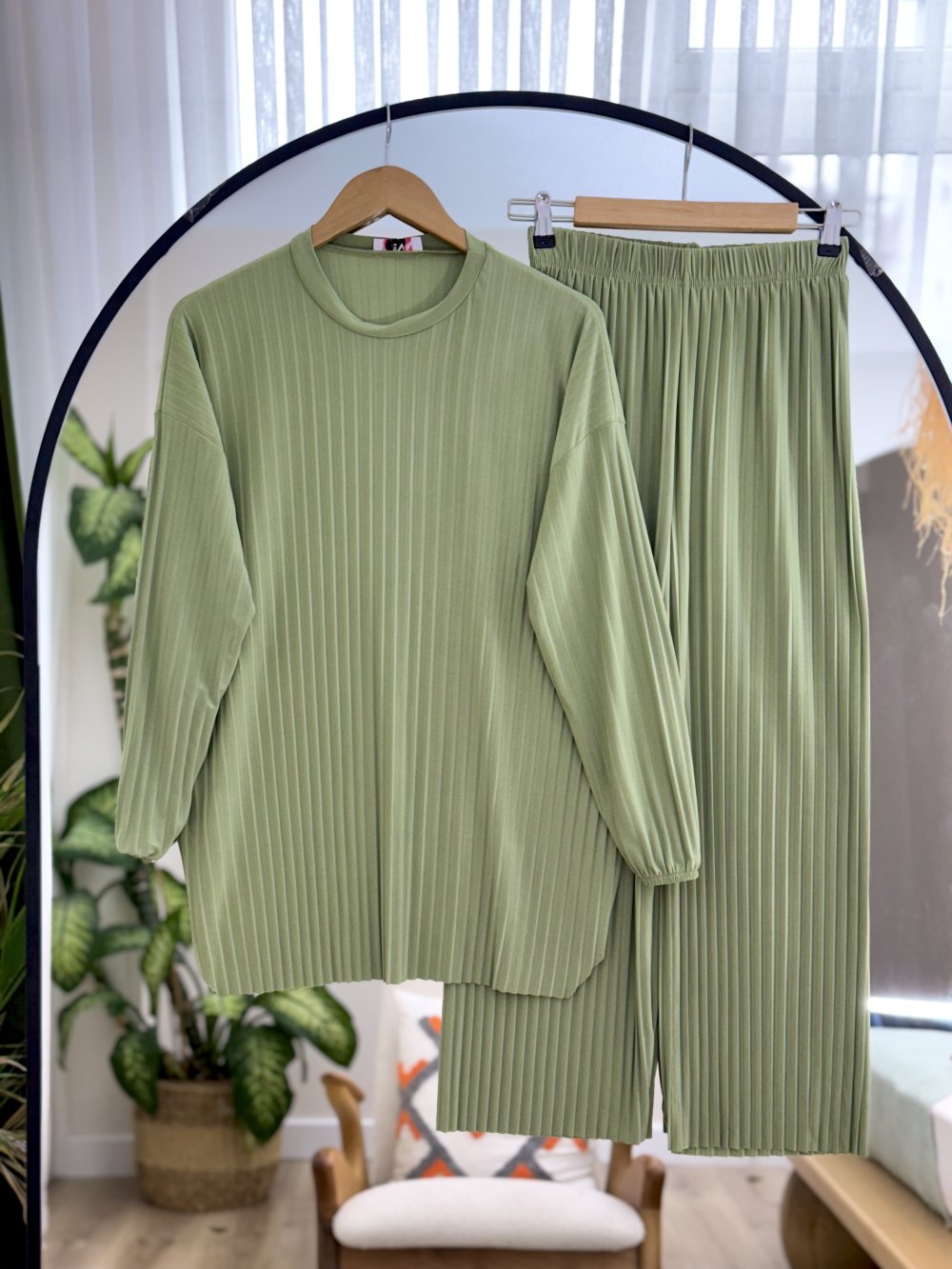 Sendy Kumaş fulpiliseli Pantolonlu Takım Mintyeşil NV4517