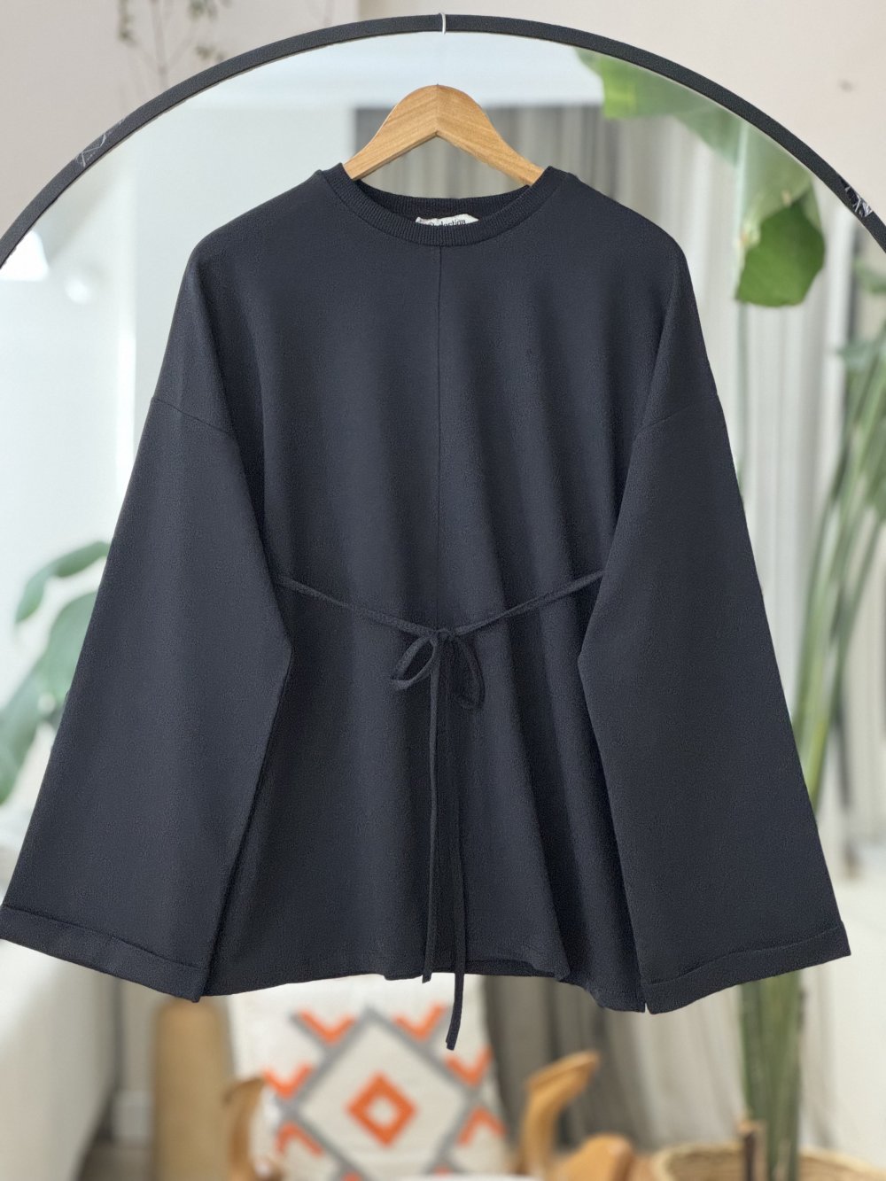 Seyyar Kuşaklı ispanyol kol Tunik Siyah DS2054