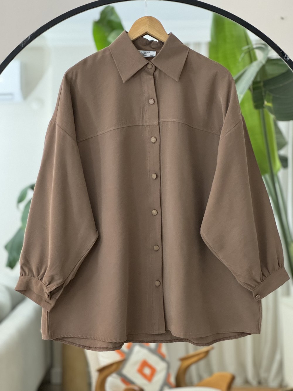 Seyyar kuşaklı salaş gömlek Tunik kahve BK9521