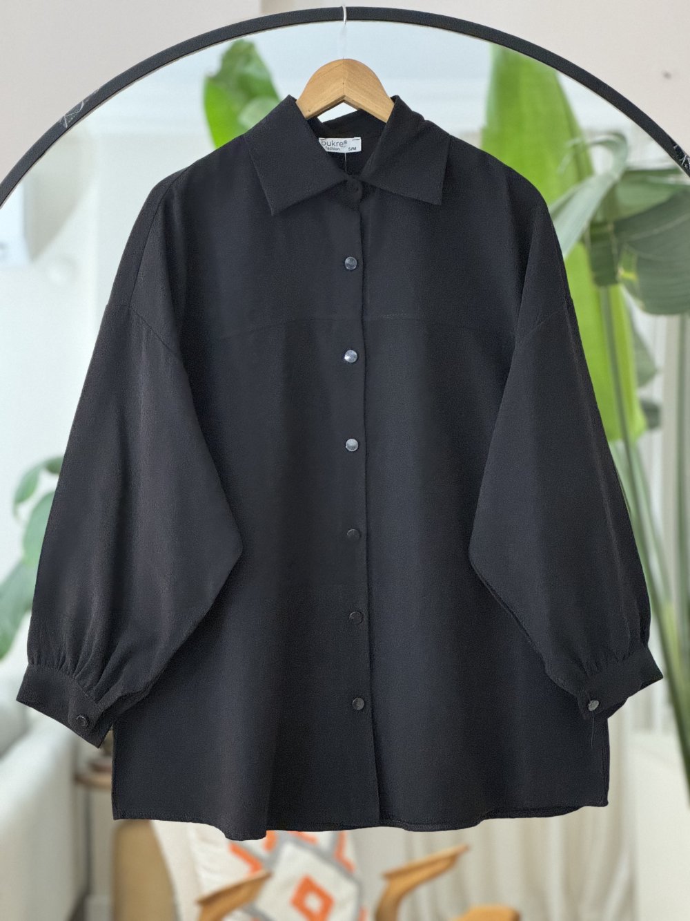 Seyyar kuşaklı salaş gömlek Tunik Siyah BK9521